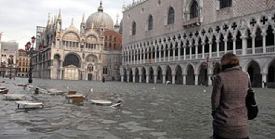 Из-за необычайно сильного прилива уровень воды в Венецианской лагуне поднялся на 1,6 метра выше средних значений. Столь высокий уровень воды в Венеции не регистрировался с 1986 года.