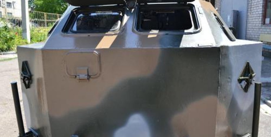 Николаевский бронетанковый ремонтный завод, за счет собранных добровольных средств аграрных предпринимателей области, сконструировал и собственными силами изготовил бронированный блокпост.