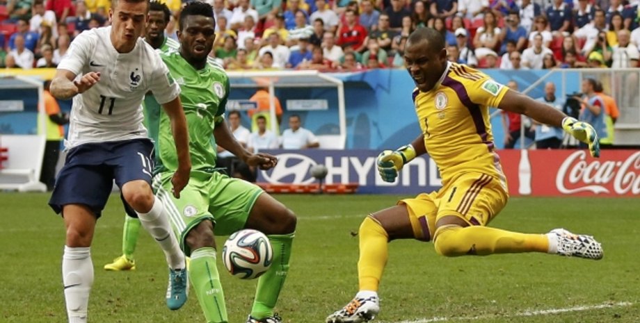 Первые минуты встречи наглядно показали, что легко сегодня французам не будет. Нигерия агрессивно действовала в центре поля, не тушуясь перед именитым соперником. Мощные Эменике и Мозес умело навязывали борьбу защитникам соперника, остро выглядел быстроногий Одемвинги. Ле Бле сами не блистали: Бензема быстро растворился на поле, Жиру вовсе не был похож на себя, допуская огромное количество брака.