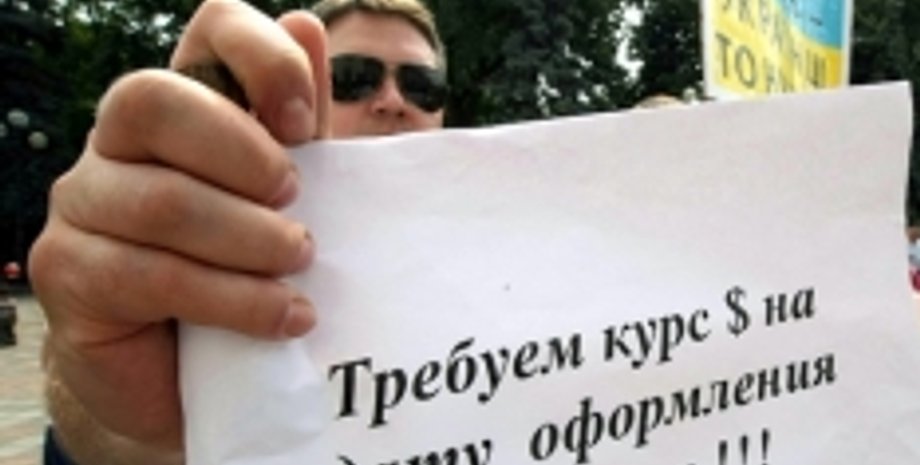 Выходы из дома парламента перекрыты митингующими, которые требуют перевести валютные кредиты в гривневые.