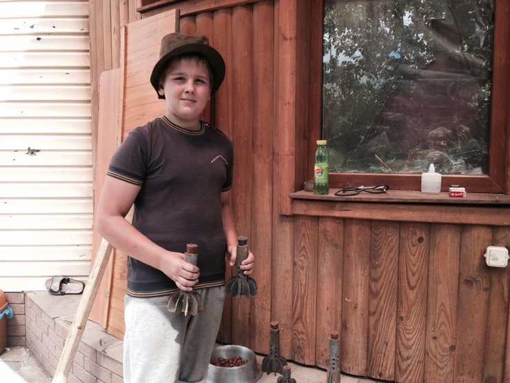 Книгу нашел школьник Вова. Сейчас у него летние каникулы. Самое радостное время для детей в этом году стало самым печальным. Мальчик живет в Семеновке. Это небольшой поселок вблизи Славянска. В населенном пункте нет ни одного здания не продырявленного пулями или снарядами. Многие дома разрушены и не подлежат восстановлению. Совсем недавно здесь шли тяжелейшие бои. Поселок контролировали боевики. Местные называют их "ополченцами". Украинская армия обстреливала городок. Так длилось практически три месяца. Все это время Вова был здесь. Он научился по звукам отличать, когда стреляют из автомата, пулемета или гранатомета. После того, как бои стихли у мальчика появилось новое хобби - он собирает хвостовики от мин. Здесь этого "добра" осталось очень много и коллекция пополняется каждый день. Если мальчик находит не разорвавшийся снаряд - на дороге ловит проезжающих военных и уже те вызывают саперов. Таких находок здесь тоже хватает. Пойдет ли Вова в школу первого сентября, он сам точно не знает. Мальчик окончил седьмой класс и перевелся в лицей. Но здание учебного учреждения разбомбили, и теперь лицея нет.