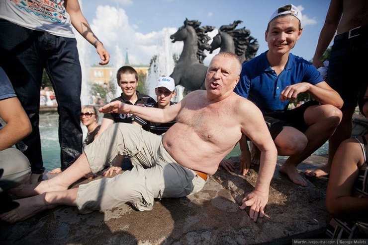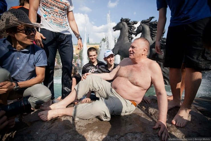 Лидер ЛДПР Владимир Жириновский устроил сегодня купания в фонтане на Манежной площади Москвы, сообщает "Эхо Москвы".