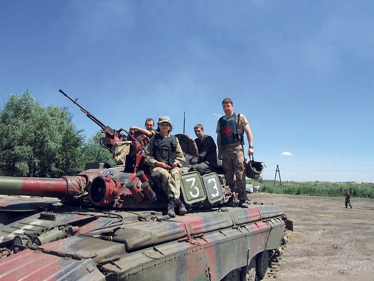 Таня Рычкова свой человек. В доску своей она становится сразу, с первого взгляда, еще до момента знакомства, которое происходит так. Мы с волонтером Иваном Звягиным в одном из лагерей украинских военных под Краматорском выгружаем из багажника последний ящик хирургических инструментов возле медицинской палатки и садимся в машину. В этот момент дверь со стороны пассажира, то есть с моей, распахивается. Я не сразу понимаю, что происходит: взмах ресниц, вопрос: "Вань, ты по списку все взял? Тогда погнали в нашу роту". От легкого, но уверенного движения мое тело смещается таким образом, что ручник оказывается между ног. Таня — черная футболка, камуфляжные штаны — захлопывает дверь, сует мне ладонь: