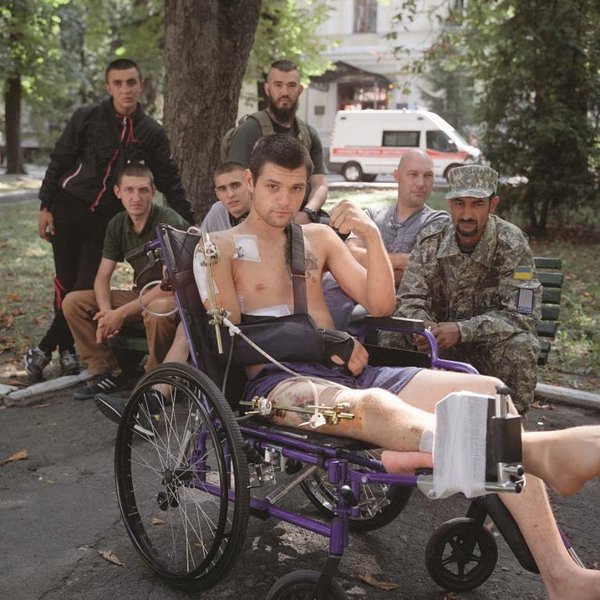 Война в глазах солдата. В его ранениях, в том, что ему все время больно, что он потерял руку или ногу. Мне надо поймать состояние человека, которое длится доли секунды. Здесь у него написано "за ВДВ", а там пальцев нет, глянул на ноги, там и ногам трындец… По большому счету, в Славянске, Николаевке я увидел последствия войны, а саму войну - в госпитале. Однажды стоял в палате возле пацана, которому 19 лет, ему ногу оторвало. Заходит медсестра и спрашивает у меня: "Это ваш сын?". Я ответил, что нет. И меня накрыло. Он же мне по возрасту в сыновья годится, а уже через такое прошел. Кто ему ногу вернет? Для меня в этом война.