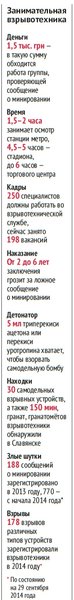 По его словам, сейчас работы прибавилось из-за "шутников". За прошлый год во всех регионах страны было 188 ложных сообщений о минировании, в этом — уже 770. Из них почти половина в Киеве. В столице чаще всего "минируют" вокзалы (в основном звонят те, кто опаздывает на поезд), метро, торговые центры, школы, прокуратуру, Верховную Раду, Кабмин.