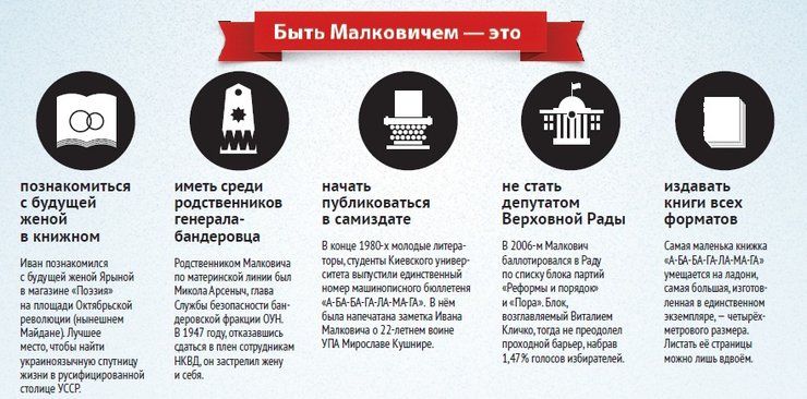 Ее замысел родился в 1991-м, в дороге, когда Малкович ехал в поезде на фестиваль молодежи в польском Сопоте. По возвращении занял тысячу долларов, огромные по тем временам деньги, в одной из канадских школ. Вскоре вернул — но уже не деньги, а 500 книжек. Кредиторы их потом продали по 10 долларов и прекрасно заработали. Урок бизнеса, тоже неплохо.