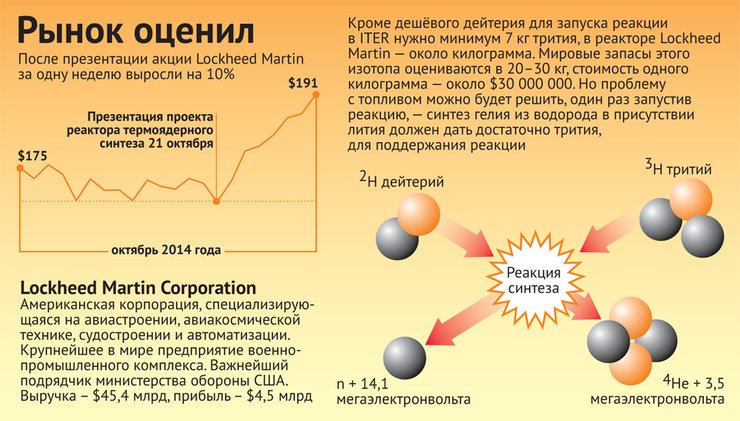Несмотря на скепсис ученого мира, презентация Lockheed Martin произвела внушительное впечатление на бизнес. После нее акции компании всего за пару недель вышли на пик своих биржевых показателей, их котировки превысили $185 и продолжают расти, хотя еще в начале года они стоили около $150. В ценные бумаги Lockheed Martin вкладывают те, кто поверил в обещание Томаса МакГвайра через 10 лет "отправить на свалку истории нефть и газ".