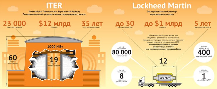 Воктябре американская компания Lockheed Martin представила проект компактного термоядерного реактора. Руководитель разработок Томас МакГвайр, возглавляющий исследовательское подразделение Skunk Works, заявил, что их детище станет мировой революцией в энергетике, обеспечив человечество бесконечной и дешевой энергией, которая отправит на свалку истории нефть и газ.