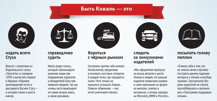 Издатель Александр Красовицкий считает, что Коваль - человек одновременно упрямый, умеющий преодолевать сопротивление среды человек, и достаточно гибкий, чтобы гасить многочисленные конфликты, возникающие накануне и в дни форума.