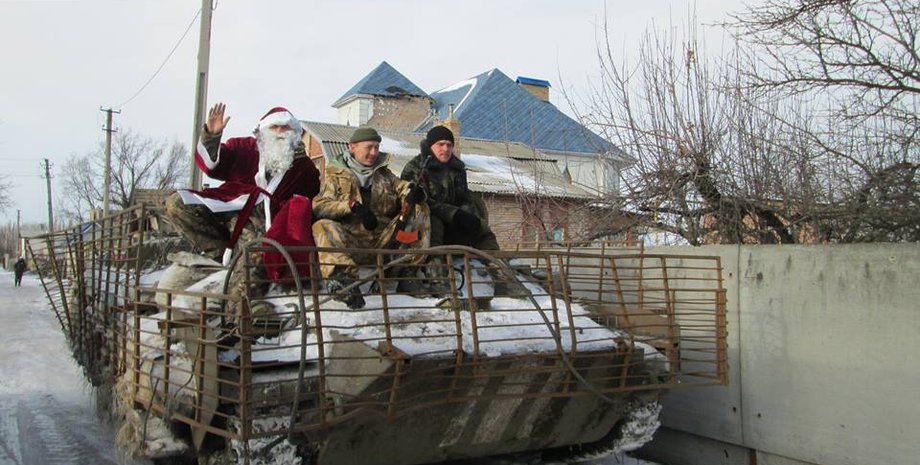 В заснеженных Песках и других околицах донецкого аэропорта Деду Морозу не раз приходилось пересаживаться на гусеничную бронетехнику. Добраться до самых отдаленных уголков Звягину помогали десантники 90-й аэромобильного батальона.
