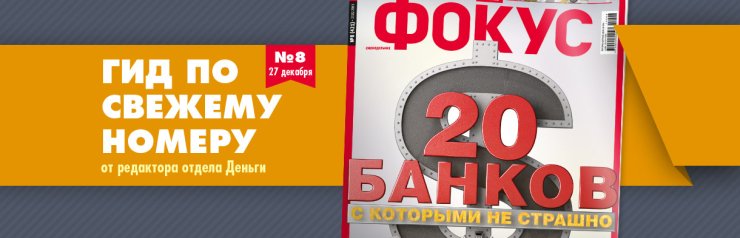 20 банков, с которыми не страшно. Вы такие вообще видели? А мы порылись и нашли. В общем-то, публиковать список нам тоже было страшно. Но мы со своими страхами справились. А вы чтобы справиться со своими, возьмите и почитайте – в свежем номере Фокуса ТОП-20 розничных банков. А еще много полезных советов, как выбрать банк для хранения денег. Если, конечно, вы все деньги еще не вложили в гречку и соль.
