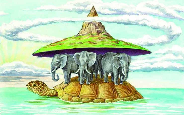 Предположим, Пифагор, Галилей и Магеллан были правы, и Земля имеет шарообразную форму. Как тогда объяснить, что жители Гренландии не скатываются во сне с кроватей в Атлантический океан? То, что кое-кто видел круглую Землю из космоса, ничего не значит: космос — тоже не то, чем кажется с Земли. И то, что можно вернуться в ту же точку, совершив кругосветное путешествие и обогнув земной "шар", также ничего не доказывает. С тем же успехом Земля может быть не шаром, а лентой Мебиуса. Или лестницей Пенроуза. Или котом Шредингера. Или бутылкой Клейна. И почему бы, кстати, бутылке не стоять на слонах и черепахе?