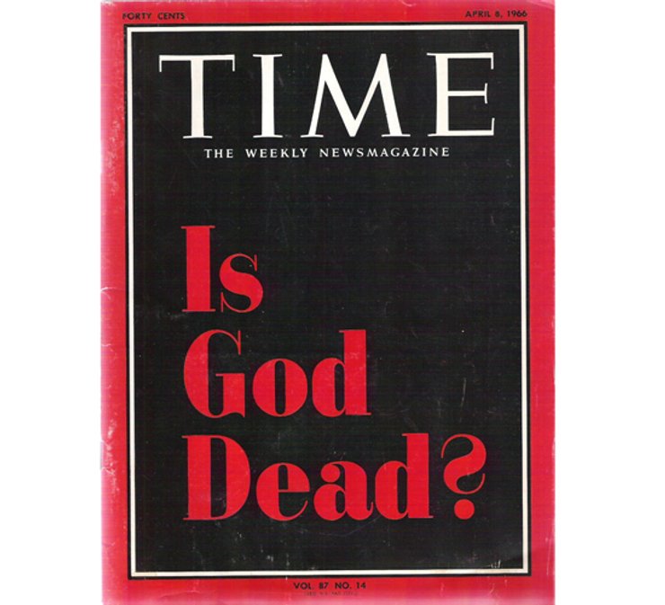 Может показаться, что оскорбление чувств верующих — новейшее изобретение одного соседнего государства. Но за океаном на этом делали кассу еще в прошлом веке. Ни постановочного фото, ни мудреного коллажа или остроумного рисунка. Простой шрифт и простой вопрос: "Бог мертв?" Набожные читатели в истерике: это объявление о старте Армагеддона? Атеисты хлопают в ладоши: наука рулит! И те и другие бегут в газетные киоски. В упрятанной под обложкой статье обсуждались вещи вполне безобидные: что концепция Бога со временем будет становиться более абстрактной и верующие больше не будут подразумевать под Богом сидящего на облачке старичка. Эта обложка без картинки стала своеобразным "Черным квадратом" в медиаиндустрии: до этого издатели не рисковали жечь сердца покупателей одним только глаголом.