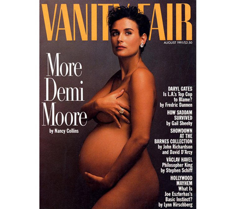 Счастливые деньки Деми Мур: она уже поборола алкоголизм, но еще не впала в зависимость от Эштона Катчера. Самое время оставить для потомков что-нибудь благообразное. На съемки призывается знаменитая Энни Лейбовиц. Деми Мур появляется перед ее объективом в чем мать родила. Она и сама родит — через два месяца, малышку Скаут ЛаРу. Это ее с Брюсом Уиллисом средняя дочка. В кадре актриса дает зеленый свет беременным знаменитостям, которые с тех пор, похоже, нагие фотосессии посещают чаще, чем гинеколога. Родить звездного ребенка и не засветить свой живот в глянце — такое после Деми почти невозможно. Только теперь это проявление острой креативной недостаточности, а тогда казалось арт-поступком и провокацией. Можете себе представить?