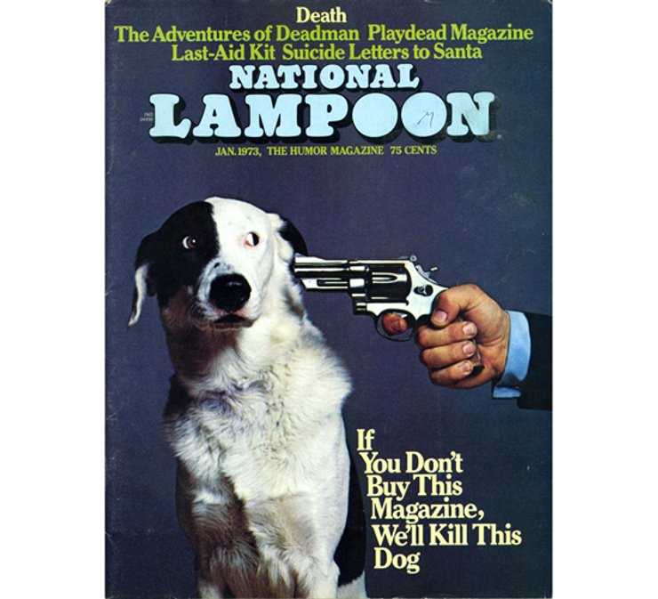 "Если вы не купите журнал, мы убьем эту собаку!" — написали на обложке "Национального пасквиля" ее создатели, во время фотосессии приставив револьвер к голове пса. Чтобы добиться у кавер-дога соответствующего выражения морды, на съемках пришлось взвести курок — пес удивленно покосился на незнакомый звук. Идея этой обложки оказалась более живучей, чем сам журнал, который закрыли в 1998-м. Сюжет "перепевали" десятки раз. Нечто подобное, например, проделал Леонид Парфенов в одной из своих телепрограмм. Ведущий взял на прицел участников группы "Кусая локти", чей клип Bad Motherfucker стал хитом YouTube, и пригрозил: "Убью, если этот выпуск программы не соберет 10 млн просмотров к концу недели".