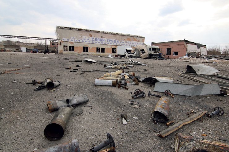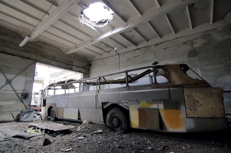 Здесь была война. Россыпи гильз и упаковок от зарядов, разбитые грузовики — вот что осталось от АТП