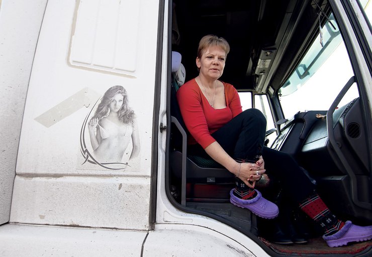 Один из водителей, Сергей, ездит в рейсы не один. В кабине его тягача делит с ним все трудности дорожной жизни жена Мария. Оба были ранены осколками, жена после ранения и контузии оглохла на одно ухо и потеряла вкусовые ощущения. До войны работала на хлебозаводе технологом, но сейчас работы нет. Завод разбит, жилье расположено в простреливаемой зоне. А вообще о трудностях говорят скупо: