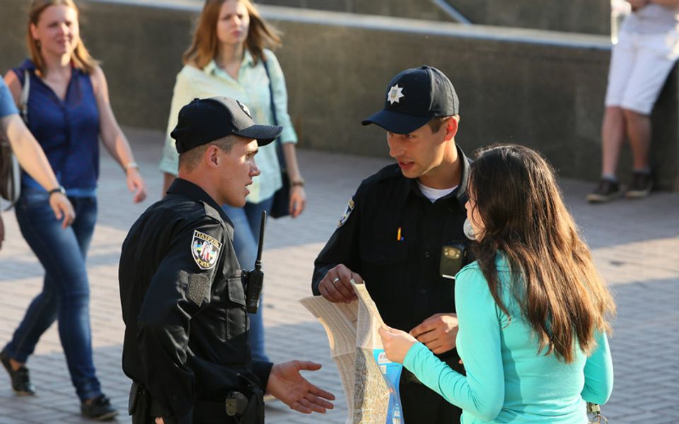 Сразу признаемся: этот театр абсурда на углу Крещатика и Прорезной — наших рук дело. Под видом сбившейся с пути гостьи города к патрульным обращалась корреспондент Фокуса, то есть я. По легенде заблудившаяся девушка иностранка, ни слова не понимающая ни по-украински, ни по-русски, и путь ей предстоит неблизкий — из центра на Борщаговку (а точнее, с Крещатика на бульвар Ивана Лепсе). Суть редакционного задания и цель эксперимента: проверить уличный патруль на готовность помочь прохожему и знание Киева, а также протестировать уровень владения иностранными языками. По первому пункту блюстители однозначно получили высший балл, по остальным — едва вытянули на троечку. Тестирование проводилось пятого июля — в первый день штатного патрулирования новой киевской полиции.
