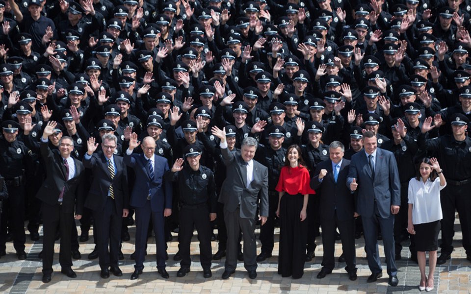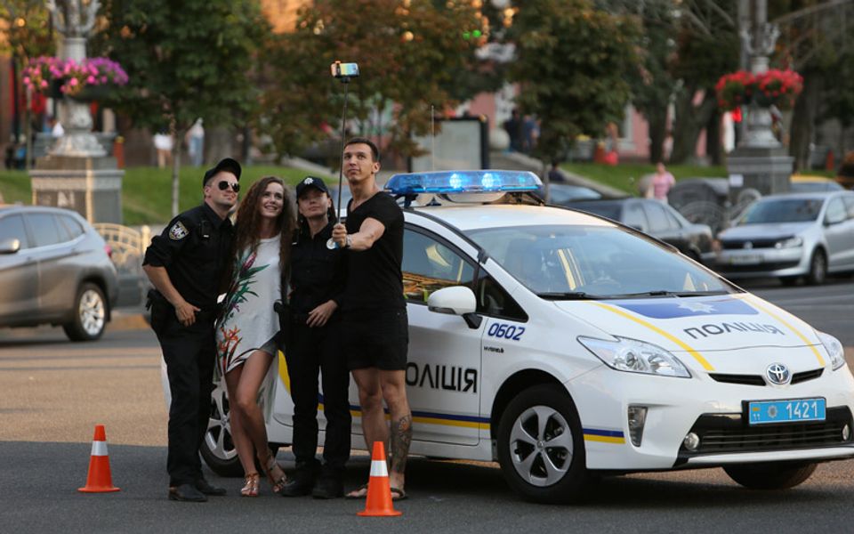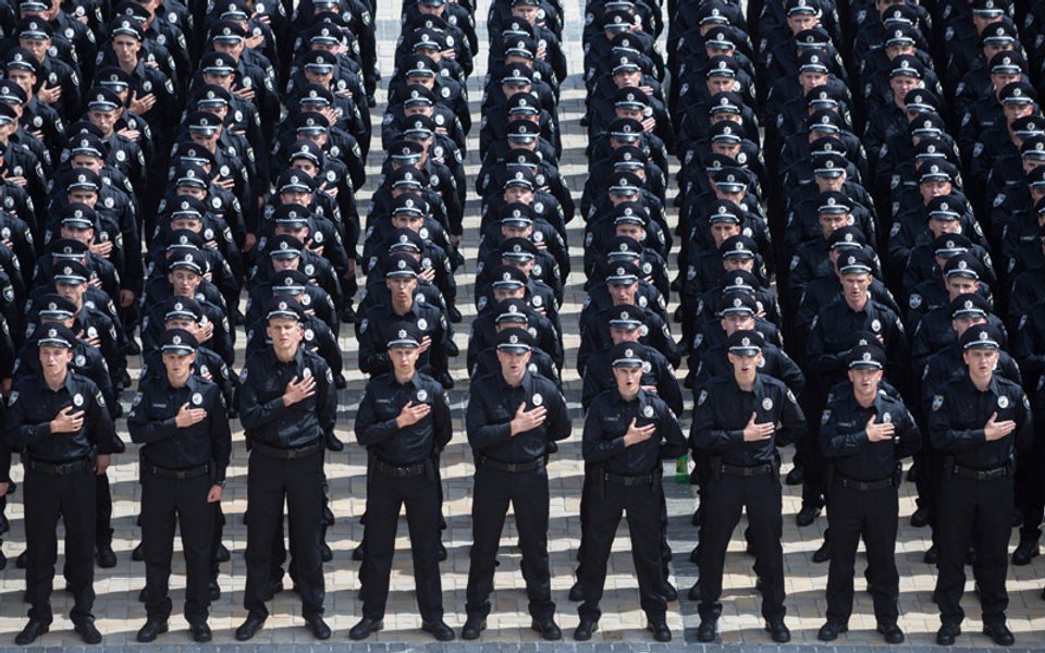 Все патрульные, помогавшие мне в тот вечер, были в одинаковой форме с одинаковыми нашивками. Опознавательных знаков, указывающих на разницу в звании или должности, не было. Однако к Юле они обращались с каким-то особым уважением и она воспринимала это как должное. Женщина-патрульный гораздо менее охотно, чем коллеги-мужчины, откликалась на просьбы прохожих, желавших сфотографироваться с новой полицией, а их на Крещатике оказалось очень много. Причем некоторые предусмотрительно приносили с собой любительские штативы и выстраивали правоохранителей вокруг патрульной машины так, будто это были фотомодели, нанятые для постановочной фотосессии. Парни позировали с явным удовольствием, Юля — с видом усталой обреченности.