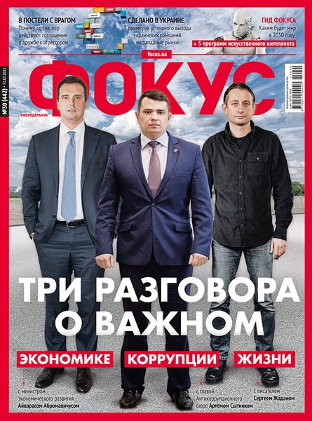 Экономика, коррупция, жизнь. На обложке свежего Фокуса герои трех интервью: министр экономики Айварас Абромавичус, глава Антикоррупционного бюро Артем Сытник и писатель Сергей Жадан. И, как ни странно (люди-то разные), все три разговора получились примерно об одном – о будущем. Во всех его проявлениях, от борьбы с коррупцией, налогов и экономики, до будущего страны и ее граждан.