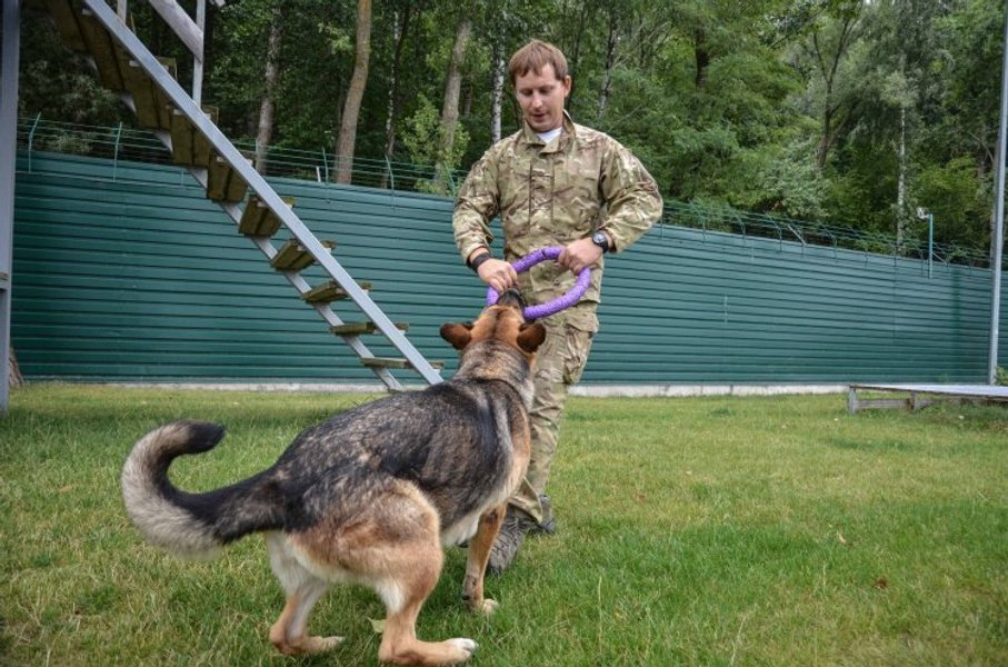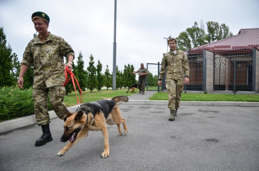 В кинологическом центре, расположенном с Межигорье, состоялась передача пограничному ведомству овчарок, которые будут "служить" на границе и в зоне АТО