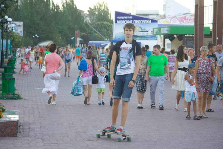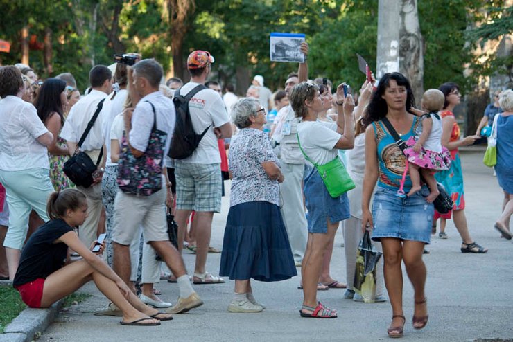 В Феодосии разгар курортного сезона. Туристов больше, чем прошлым летом, и это поразительным образом сказалось на крымчанах. Большинство перестало брюзжать, хотя раньше, когда в Крыму за год отдыхало 6 млн человек, находилось много недовольных качеством сезона.