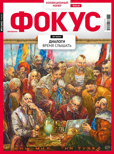 "Киш мир ин тухес". Холст. Масло. Крабы. Самогон в рюмках. Сало с лимоном. Продукция Apple. На обложке свежего номера современные украинские казаки пишут письмо. Так это видит ироничный любимец арт-тусовки Владислав Шерешевский. Это обложка коллекционного номера и арт-проекта журнала Фокус. Мы делаем такой арт-проект ежегодно, посвящая его Дню независимости.