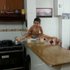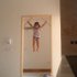 Во время исполнения некоторых упражнений малыша страхует его отец, который время от времени попадает в кадр.