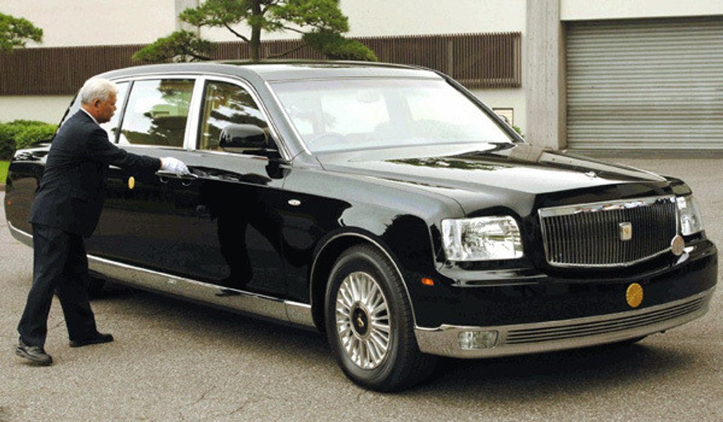 Седан премьер-министра Синдзо Абэ более демократичен, чем авто императора Акихито. Императорская Toyota Century Royal обладает более внушительным габаритам, в автомобиле есть шторки из рисовой бумаги, потолочные ширмы и гранитная подножка с электроприводом – дань уважения монарху.