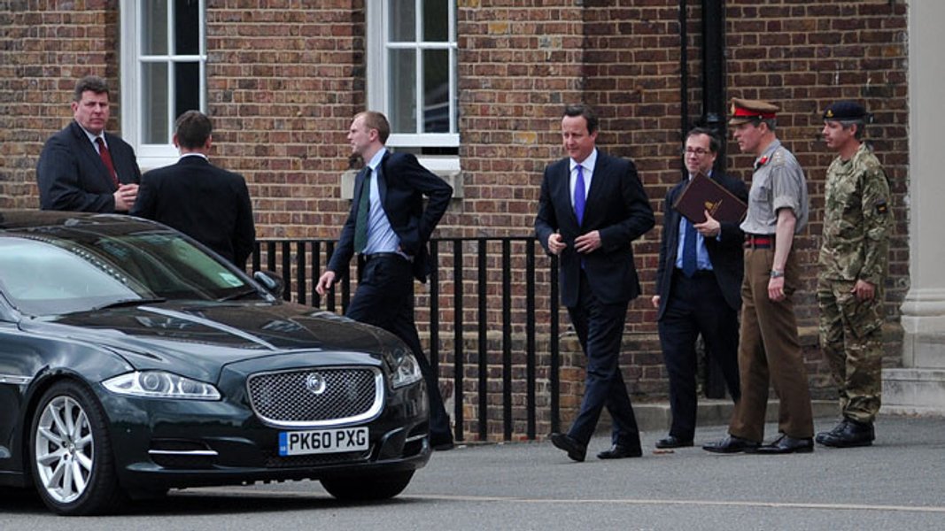 Премьер-министр Великобритании Дэвид Кэмерон— Jaguar XJ Sentinel V8 производства Великобритании