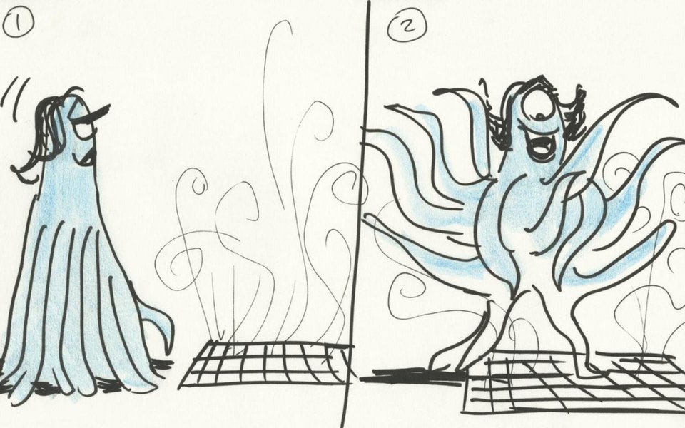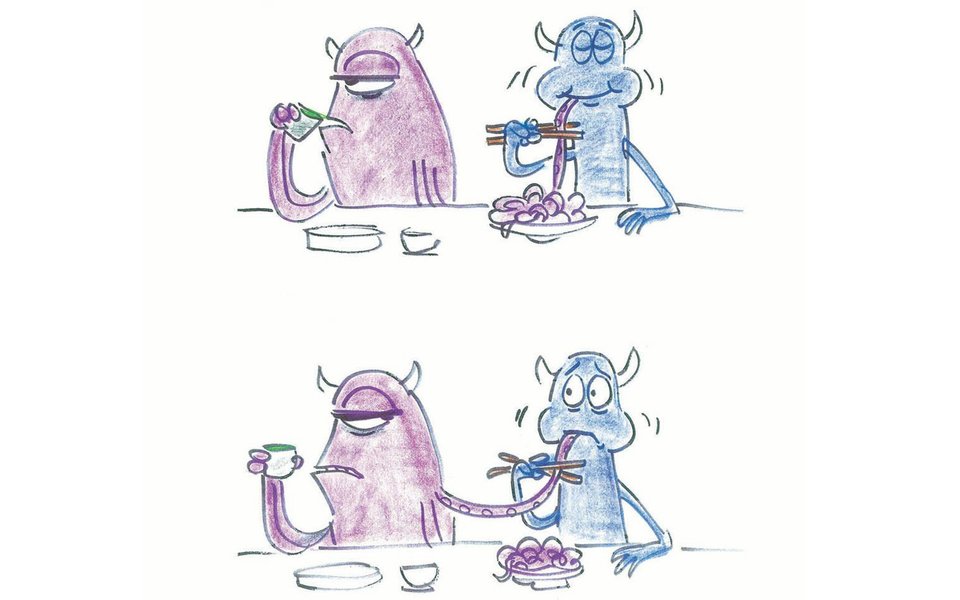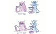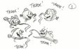Скетчи явно сделаны не для широкой публики, а для специалистов, которые смогут сходу оценить идею и, разумеется, купить ее. Наброски, сделанные карикатуристами, обсуждаются на рабочих встречах - так называемых gag sessions, от английского слова "гэг": шутка, комический эпизод, комедийный прием, в основе которого лежит очевидная нелепость.