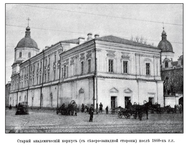 Так в 1860-х выглядел Староакадемический корпус академии, построенный по инициативе и на деньги гетмана Ивана Мазепы
