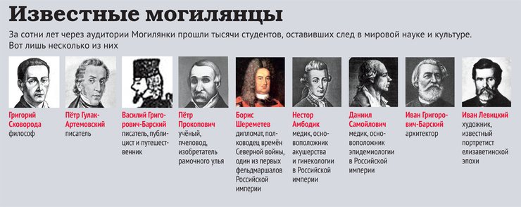 Но гораздо больше выпускников Могилянки осели в учебных заведениях Российской империи. Характерный пример: когда в 1755 году был основан Московский университет, более 80% его преподавателей составляли выпускники Киево-Могилянской академии. Бывшие студенты знаменитого киевского вуза основывали школы и духовные семинарии едва ли не в каждом крупном городе России: в Петербурге, Смоленске, Ростове, Астрахани, Костроме…