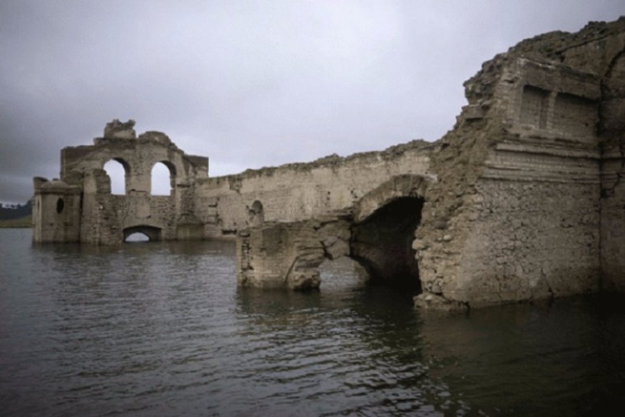 Затопленные ранее руины появились над поверхностью озера из-за засухи