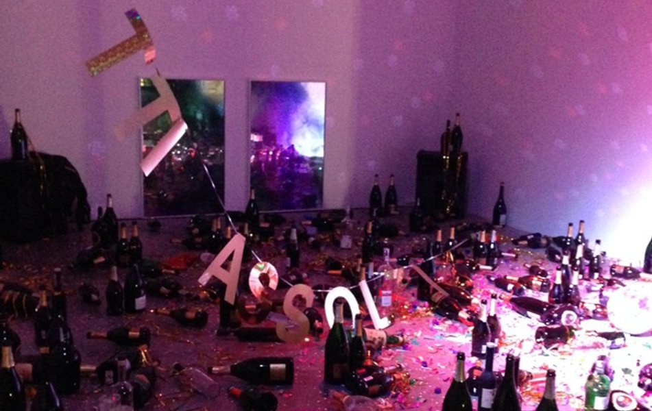 Накануне вечером в галерее проходила вечеринка, поэтому уборщики, увидев разбросанные бутылки, окурки, конфетти, обувь и одежду, решили, что это последствия бурной ночи. Они невозмутимо собрали весь "мусор" в мешки.