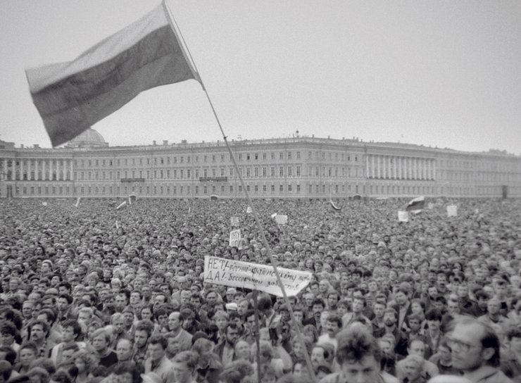 В августе 1991-го на Дворцовую площадь в Ленинграде вышло полмиллиона человек (кадр из фильма)