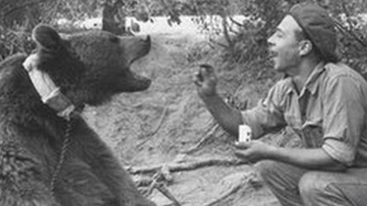 Сирийский бурый медведь был найден в Иране в 1942 году. Солдаты польской армии генерала Андерса приручили животное.