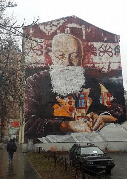 В Киеве на улице Артема появился мурал, посвященный Михаилу Грушевскому - историку, ученому и первому президенту Украины. Художники начали работу над портретом 14 ноября, для его создания использовали более 150 аэрозолей различных цветов. Общая площадь мурала - 160 кв.м.