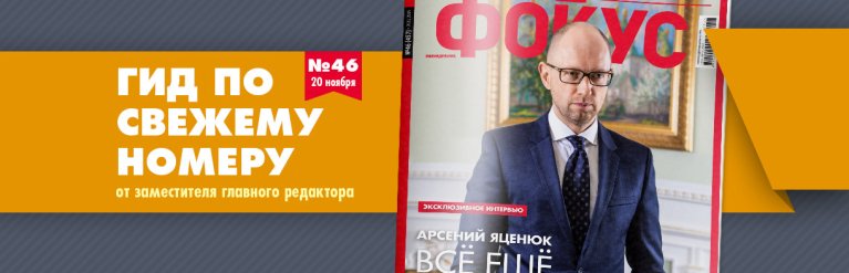 "И тут вылазит Яценюк... бла-бла-бла". Наш главный художник в свое время придумал такой шаблон для выносов, который верстальщики время от времени ставят в полосы, как бы напоминая редакторам, что вместо "бла-бла-бла" они должны написать правильный вынос. Однажды "И тут вылазит Яценюк..." почти ушел в печать — выловили в последний момент. После того случая мы запретили верстальщикам использовать этот шаблончик. Но в последнем номере Фокуса Арсений Петрович таки вылез...