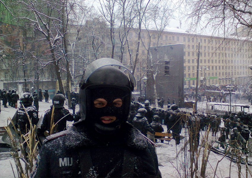 На Майдан нас отправили не сразу. Наша часть конвоировала и охраняла подсудимых. Утром 1 декабря я вместе со всей страной узнал о разгоне протестующих. Чувства были смешанные. Понимаю, люди вышли высказать свое мнение. Но высказались — и расходитесь. Чего стоять-то? С другой стороны, убрать толпу с площади тоже можно по-разному. Например, взять в кольцо или клином идти и так оттеснять. По одному выдергивать самых активных — остальные сами разойдутся. Все это можно делать спокойно, без показного насилия. Не знаю, был ли это конкретный батальон или специально парней отбирали, но ясно одно: приказ был зачистить площадь именно жестко. Тогда же, первого числа, мы неожиданно получили команду охранять порядок на Майдане. Практически все время наши ребята стояли в оцеплении в Мариинке и в районе Грушевского. Но мы не каждый день там были. Параллельно выполняли и свои прямые обязанности по конвою.