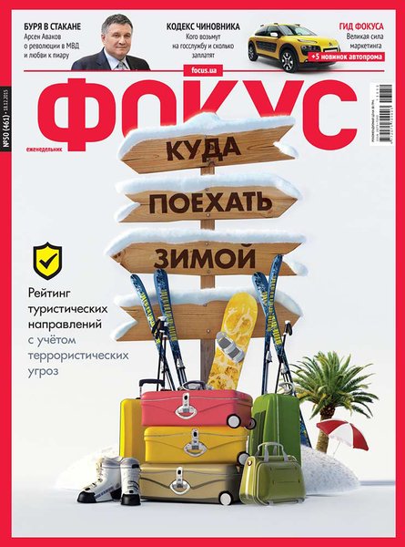 После изматывающих бесед редакцию потянуло на отдых. Но куда податься? В Египте падают, во Франции взрывают, в России сажают. В свежем номере рейтинг зимних турнаправлений с учетом террористических угроз и прочих опасностей. Обложка говорит сама за себя – к делу мы подошли основательно. 20 стран со всеми раскладками: цены, уровень безопасности, время в пути.