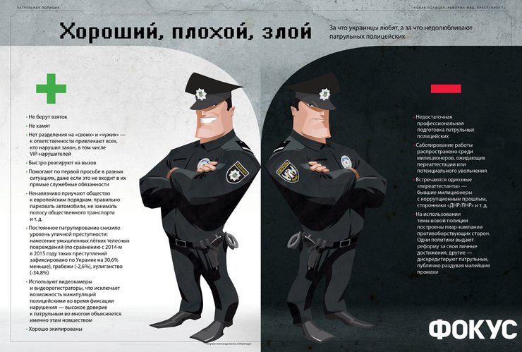 Они не избегали проблемных тем, честно признаваясь, что с ними действительно не подписали давно обещанных контрактов, выдали только один комплект летней формы и вообще не выдали зимней. Что им часто приходится перерабатывать без каких-либо доплат. Что они еще не проходили курсов экстремального вождения. Что борьба с бюрократией в Департаменте патрульной полиции идет вяло и неэффективно. Что премии и штрафы распределяются ротными, из-за чего размер зарплаты патрульного часто напрямую зависит от того, в каких отношениях он находится с ротным. Но всех сотрудников патрульной полиции, с которыми общался Фокус, объединял оптимизм по поводу будущего их ведомства. В этом они существенно отличаются от многих сотрудников старой милиции, часто исполненных фатализма и безразличия к интересам общества.