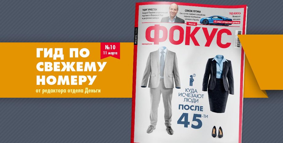 В Украине пропадают люди. Вот стукнуло им 45 и все – поди найди. В кафе молодые официанты, в медиа молодые журналисты, у менеджеров всевозможных тоже еще конспекты лекций хранятся. В общем, в свежем Фокусе остросюжетная социалка – есть ли жизнь после 45 в Украине? Востребованы ли эти люди в нашем обществе, дискриминируют ли их по возрастному признаку, и где они находят работу. Тему номера мы писали маслом, а сверху накладывали толстый слой икры. Получилось сытно: здесь и интервью с социологом Евгением Головахой и истории людей, которые изменили свою жизнь после сорока, и срез по рынку труда.