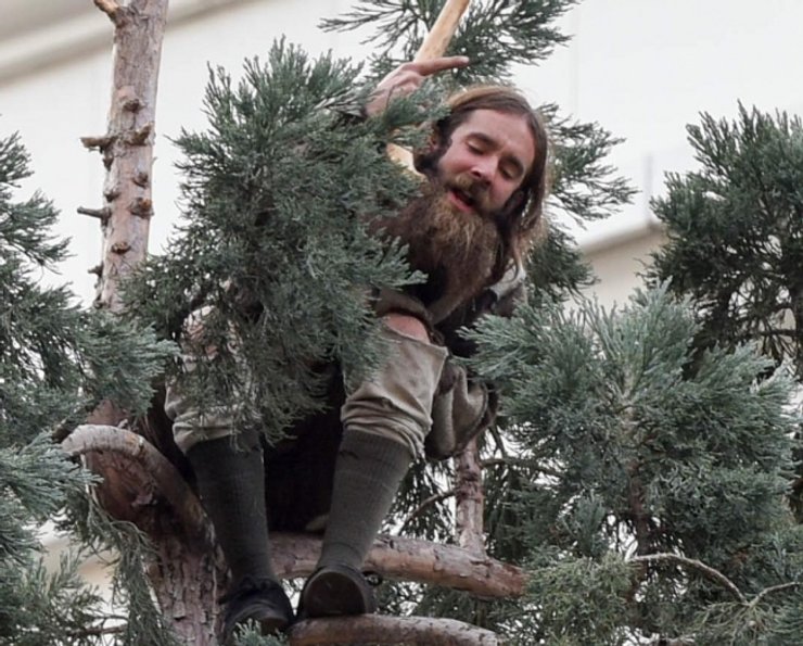 Американец взобрался на огромное дерево в центре Сиэтла и не хочет слезать