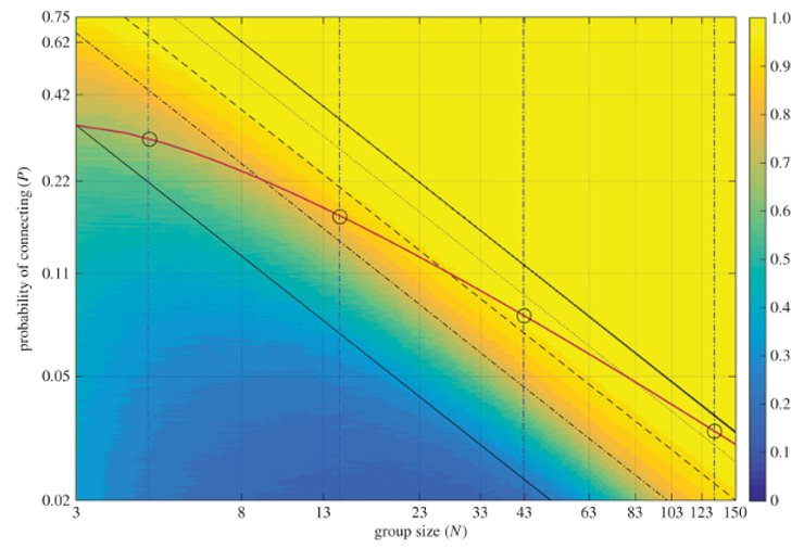 Исследователи также пришли к выводу, что количество близких связей может указывать на размер группы – чем больше группа, тем больше друзей должен иметь человек. Так, для того, чтобы образовалась группа размером 15 человек, каждому ее члену необходимо иметь трех близких друзей, а для группы в 45 человек – уже четырех. Чтобы получилась группа из 132 человек, у каждого должно быть по пять близких социальных связей.