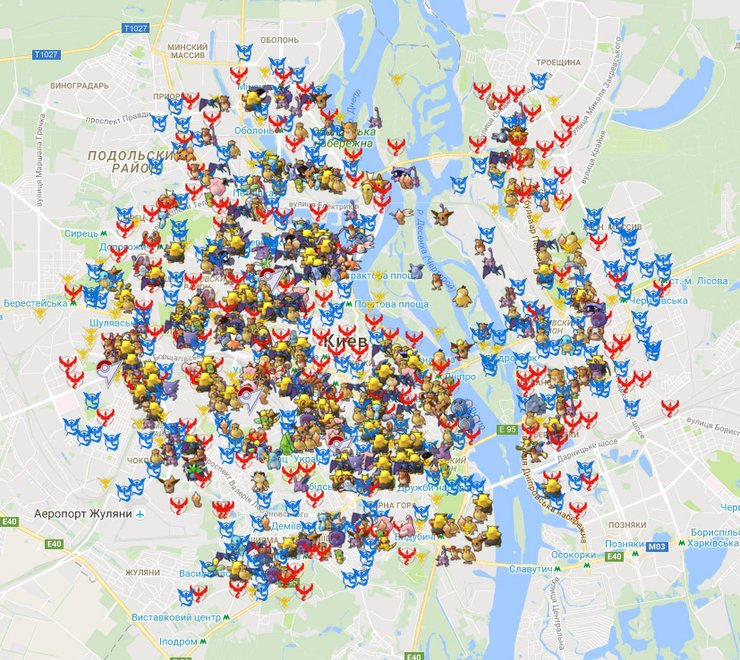 В Интернете появилась интерактивная карта Киева с отмеченными на ней покемонами из популярной игры Pokemon GO, пишет издание "Наш Киев".