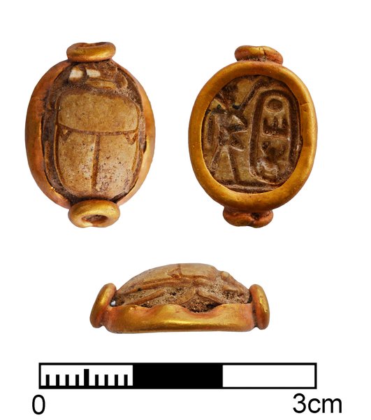 Другой важной находкой оказались египетские скарабеи. Одного из них удалось соотнести с исторической личностью. На нем было вырезано изображение фараона и надпись "мен-хепер-ра", одно из имен Тутмоса III. Он правил в 1479-1425 годах до нашей эры и был одним из самых могущественных египетских фараонов, при котором Египет достиг наибольшего влияния. В годы правления Тутмоса III территория страны включала в себя Сирию и часть Месопотамии (современного Ирака).