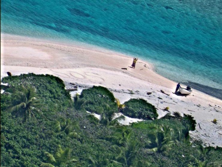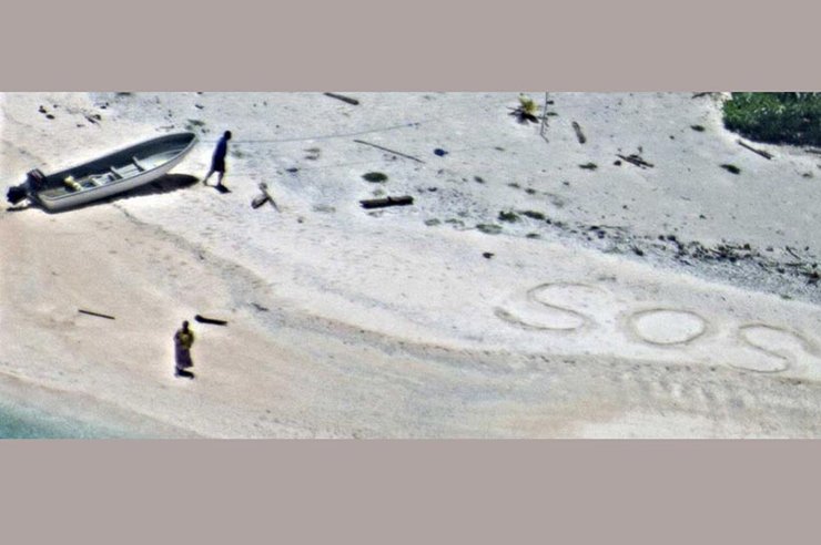 Попавших на необитаемый остров моряков нашли, благодаря надписи SOS на песке