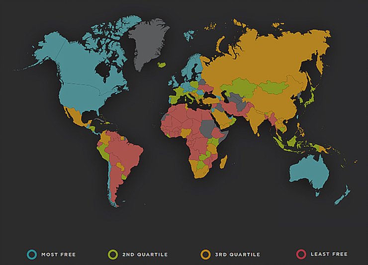 Согласно докладу, составленному на основе статистики по каждой стране за 2014 год (последний год, доступный для сравнения данных), мировой рейтинг экономичных свобод снова возглавил Гонконг. За ним следуют Сингапур, Новая Зеландия, Швейцария, Канада, Грузия, Ирландия, Маврикий и Объединенные Арабские Эмираты.