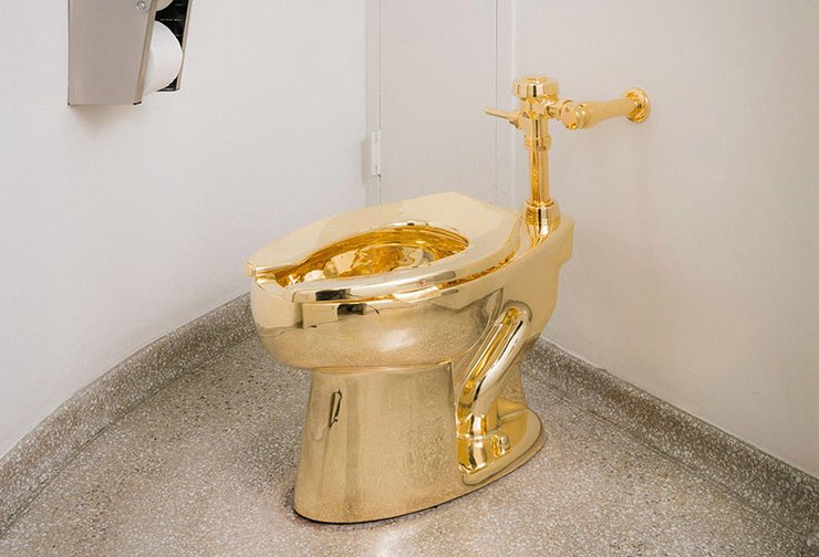 Унитаз представлен в рамках выставки художника Маурицио Каттелана, это его первая выставка за 5 лет.